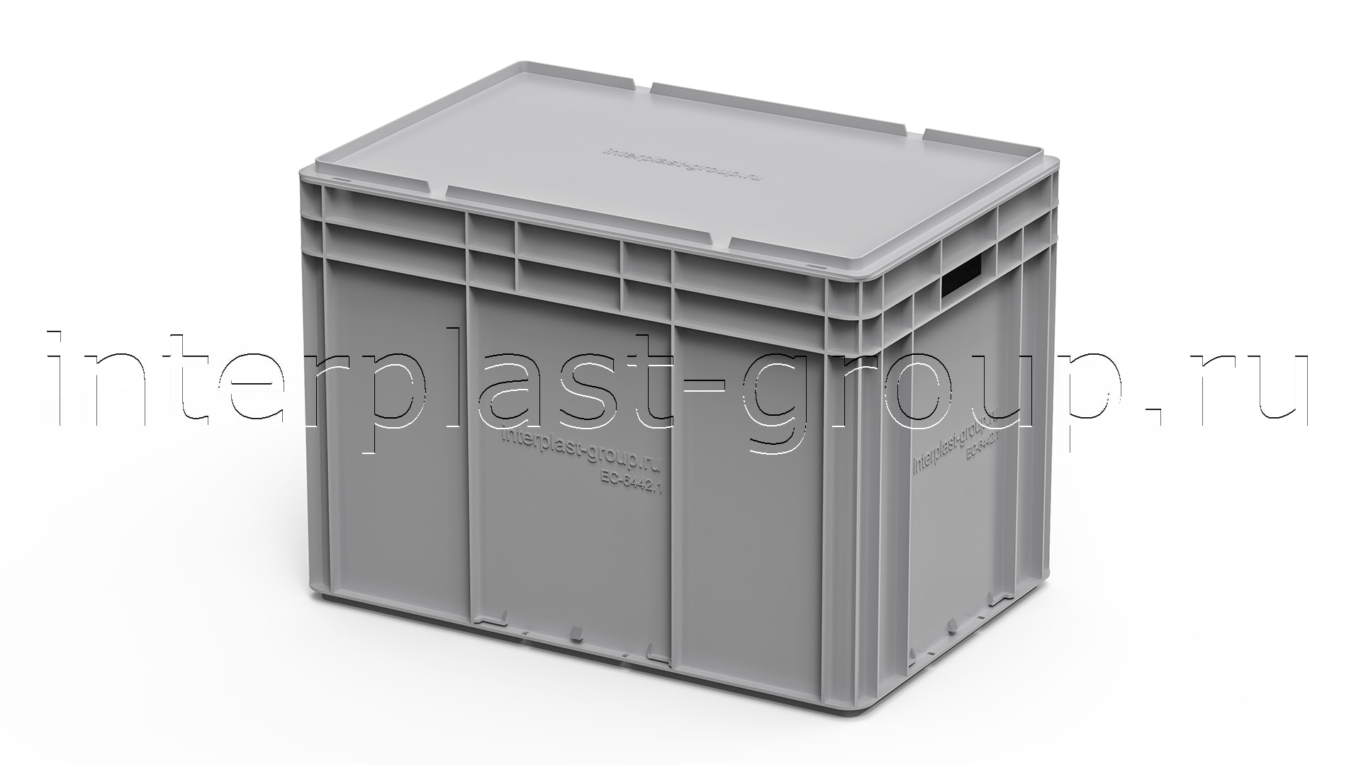 Евроконтейнер открытые ручки/сплошное дно (серый), 600x400x420 мм