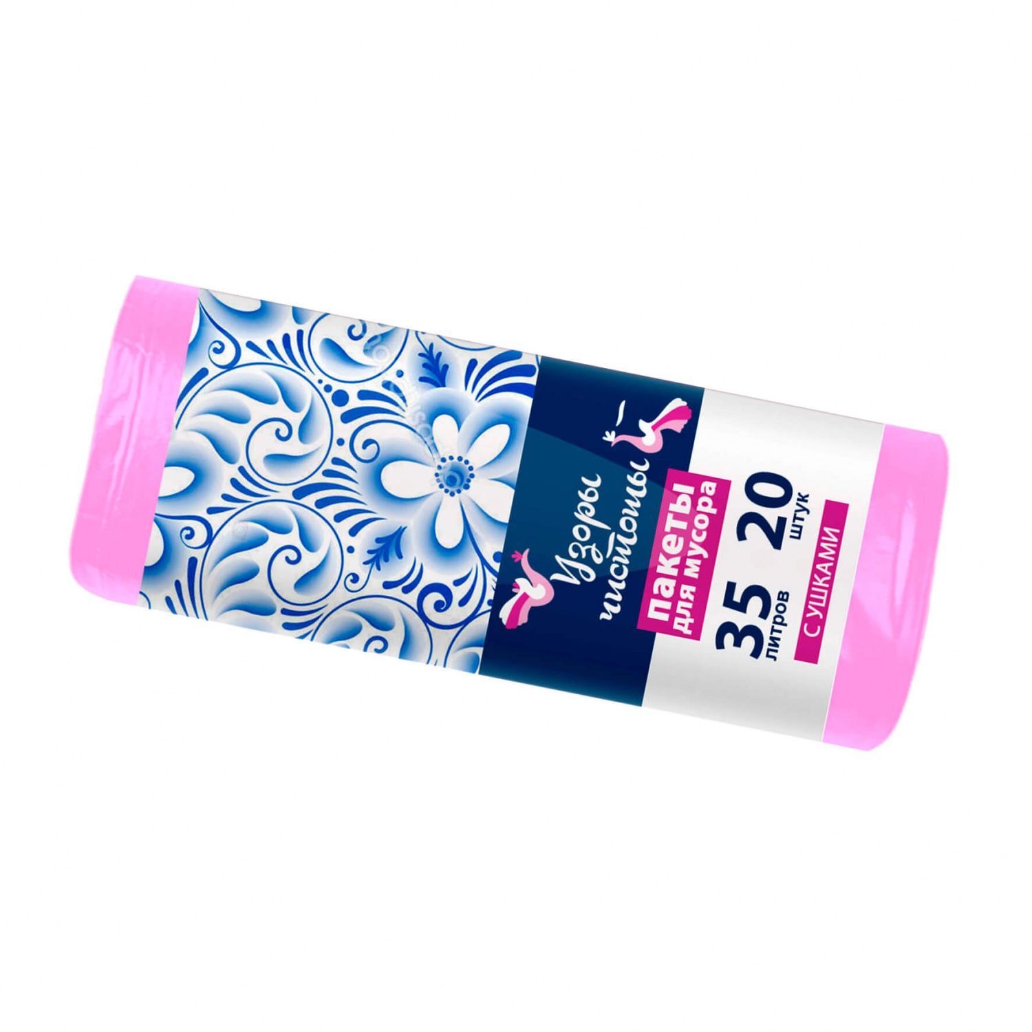 Мешки для мусора 35 л, с ушками, розовые, в рулоне 20 шт., ПНД, 12 мкм, 655х500 мм, Узоры Чистоты, МУ3469 (МСУ-35роз)
