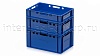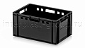 Ящик для мяса Е3 это третий по размеру в линейке мясных ящиков. Разработан специально для использования в мясной промышленности. Отлично штабелируется и собирается в единый сет со всеми ящиками серии. Изготовлен из первичного полиэтилена, и адаптирован для хранения в холодильных и морозильных камерах.